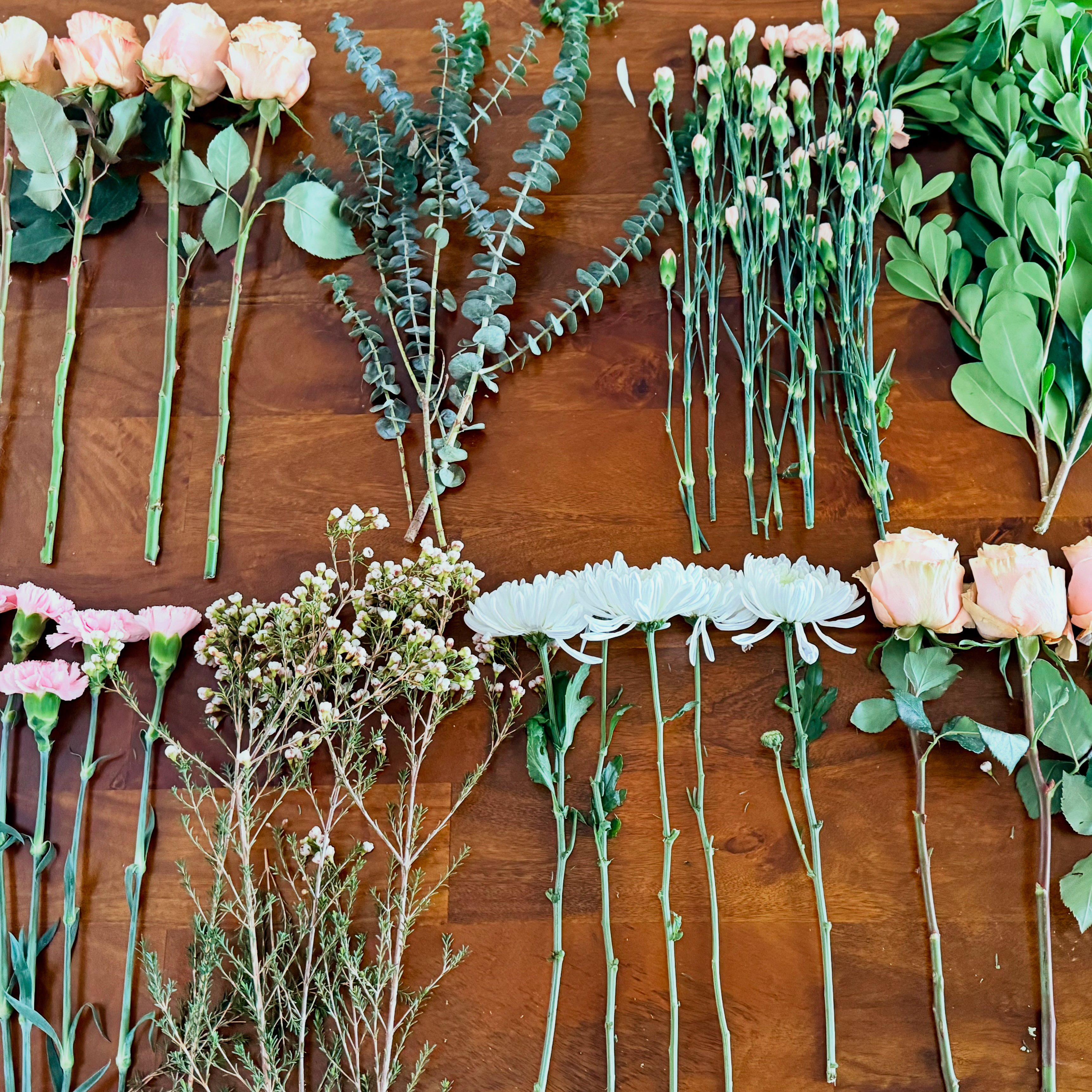 Fresh-cut stems (2 focal, 2 fillers, 2 greenery)